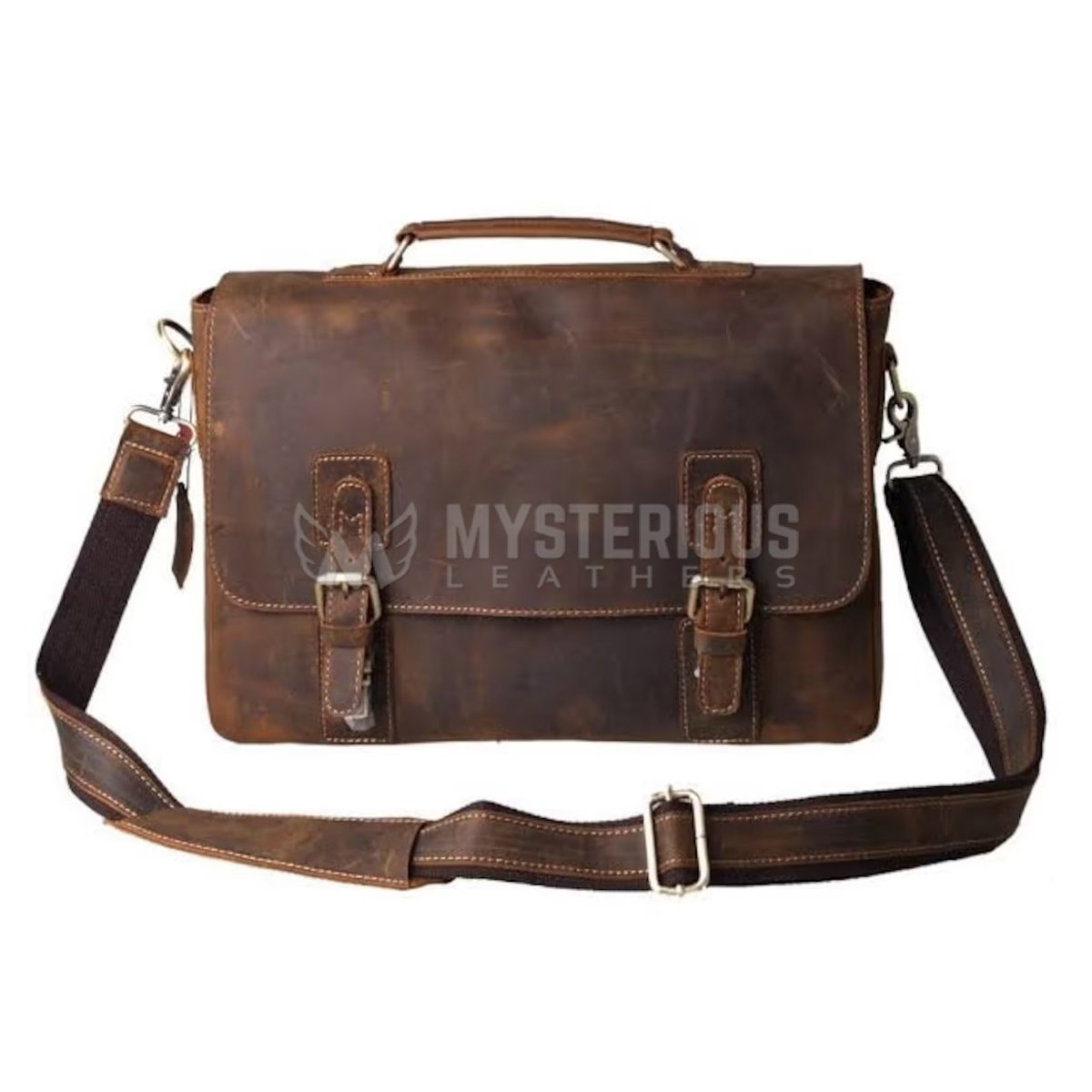 Antique Dark Brown Genuine Crazy Horse Leather Laptop Bag