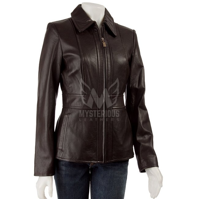 Women Soft Brown Coat Style Leather Jacket ML 7369